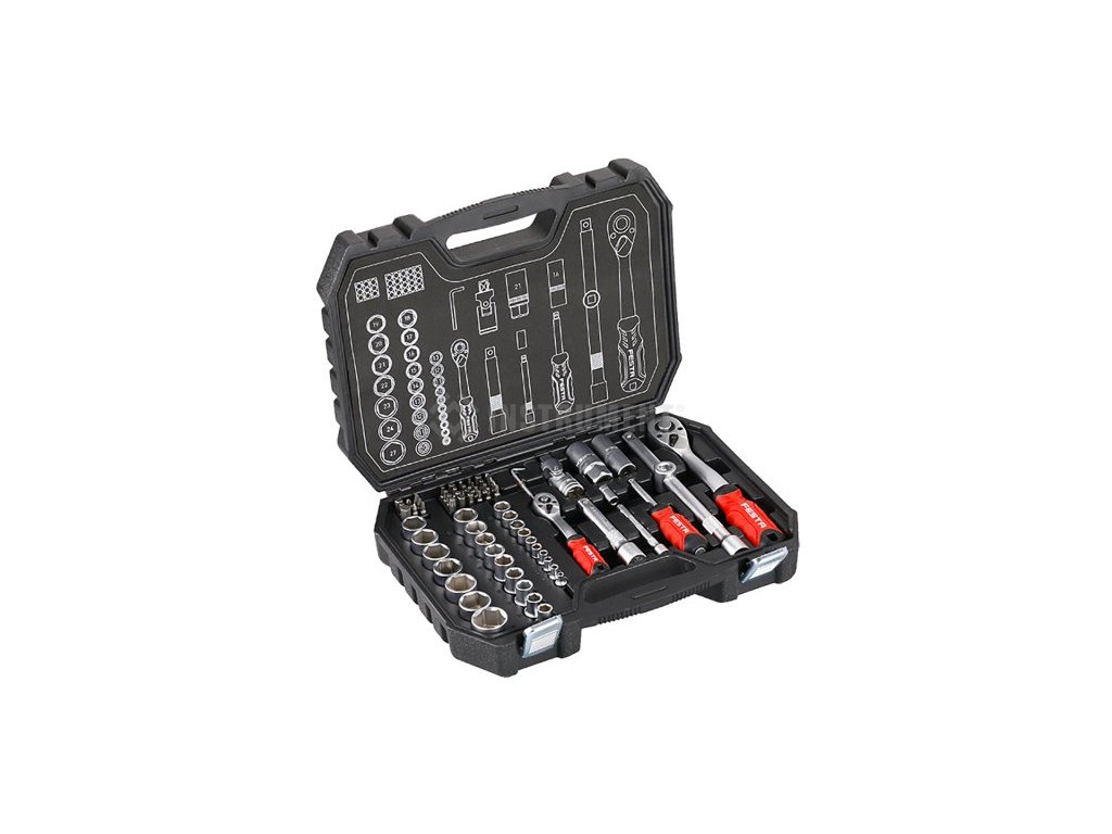 Kvalitní gola sada je vhodná díky kvalitě použitých materiálů a zpracování v profesionální autodílně nebo servisu. 10 let záruka. Všechny části jsou vyrobeny z vysoce kvalitní chrom-vanadiové oceli. Niklová povrchová úprava. Hroty bitů jsou ze slitiny oceli S2. Ráčny mají jemné dělení 72 zubů, tělo ráčny z CrV oceli, zubový mechanismus z S2 oceli, ergonomicky tvarovanou rukojeť se zdravotně nezávadnou gumou. Nový design plastového kufru z primárního materiálu s kovovými uzávěry a panty víka.