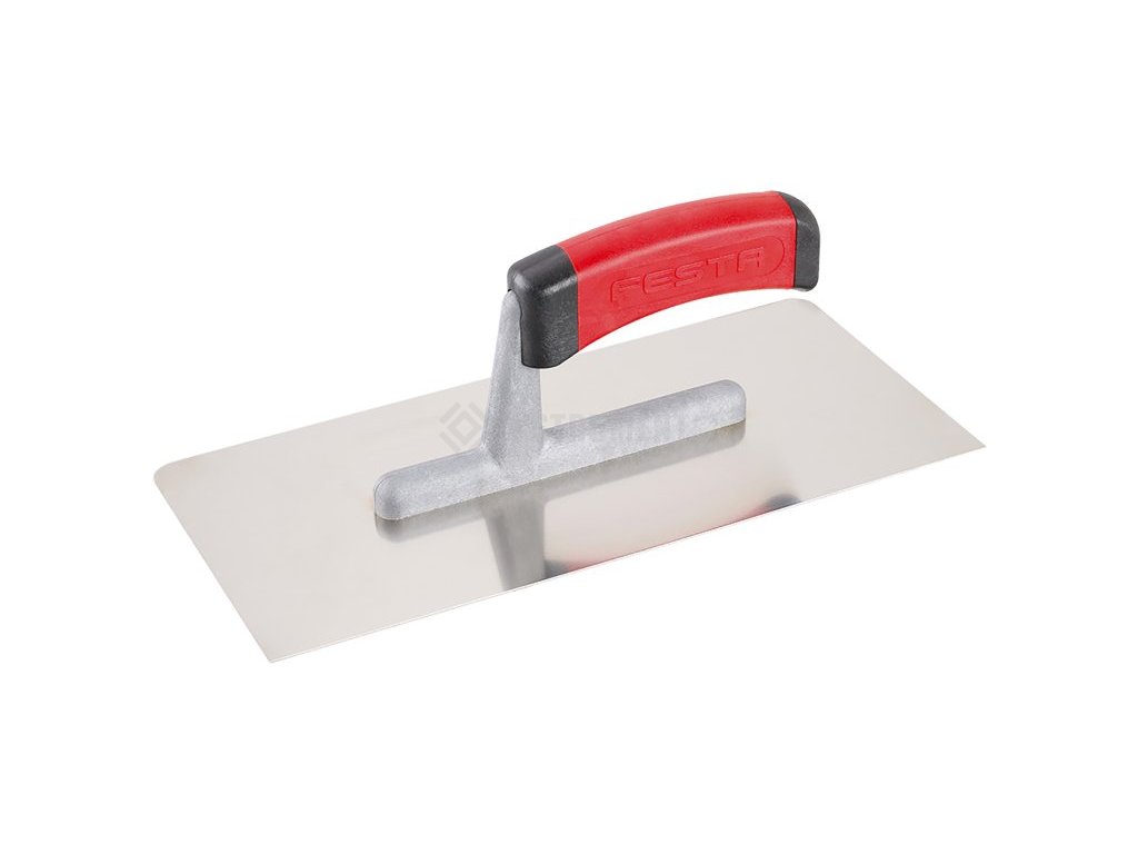 nerezové hladítko FESTA s gumovou rukojetí tloušťka plechu 0,7mm, kvalitní kyseliněodolná nerezová ocel na nanášení a hlazení stavebních hmot, lepidel atd oblé rohy pro dokonalé uhlazení povrchu bez tzv