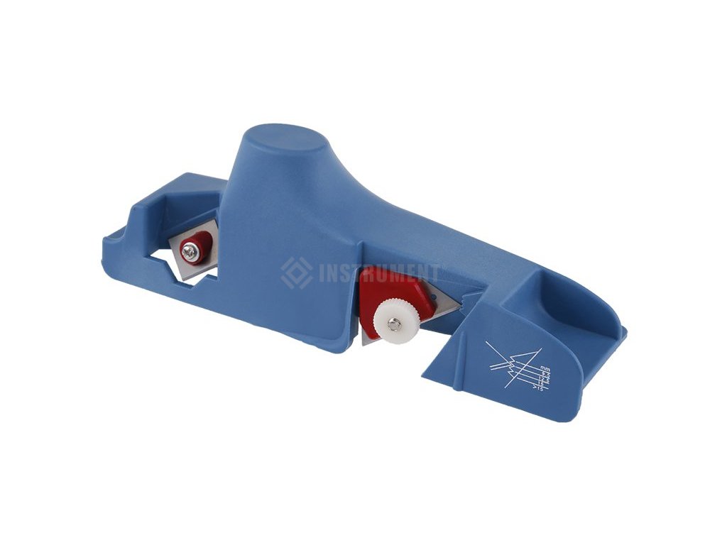 Plastový hoblík na sádrokarton s ocelovými břity, materiál : kvalitní tvrdý plast, přesná hrana, kvalitní uchycení nožů, použití : pro ořez hran sádrokartonů - vytvoření hrany (plochy) pro přilnutí spárovacího brousitelného tmelu, balení : papírový box s eurootvorem