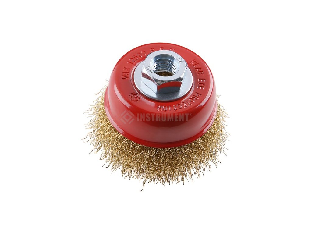 Rotační kartáč - hrnkový, kartáče FESTA zaručují kvalitní použité materiály i zpracování, vlnitý drát - pomosazený 0,3mm, průměr 75mm, uchycení M14*2, počet drátů 1350, délka drátů 23mm, maximální otáčky za min