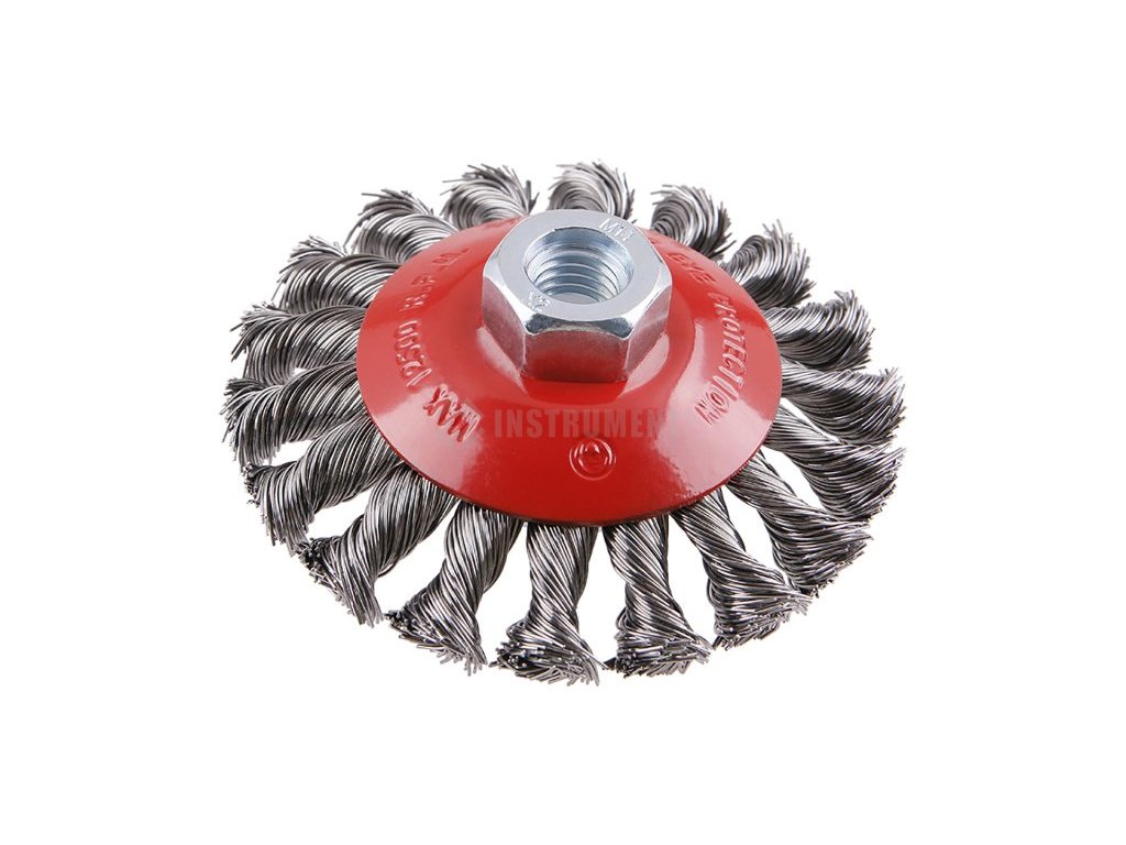 Rotační kartáč - miskový, provedení : COPY - patentovaný drát 0,5 mm - copy, se ani při extrémním zatížení nerozplétají, průměr 100mm, závit M14x2 mm, počet drátů: 900, délka drátu : 23 mm, max