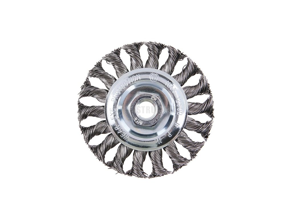 Rotační kartáč - radiální, provedení : COPY - patentovaný drát 0,5 mm - copy, se ani při extrémním zatížení nerozplétají, kartáče FESTA zaručují kvalitní použité materiály i zpracování, průměr 100 mm Závit M14x2mm Pozinkované tělo kartáče Počet drátů: 1584, Délka drátu : 27mm Max
