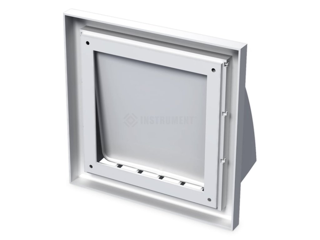 Čtyřhranná plastová gravitační klapka bez nástavce, 154 x 154 mm.