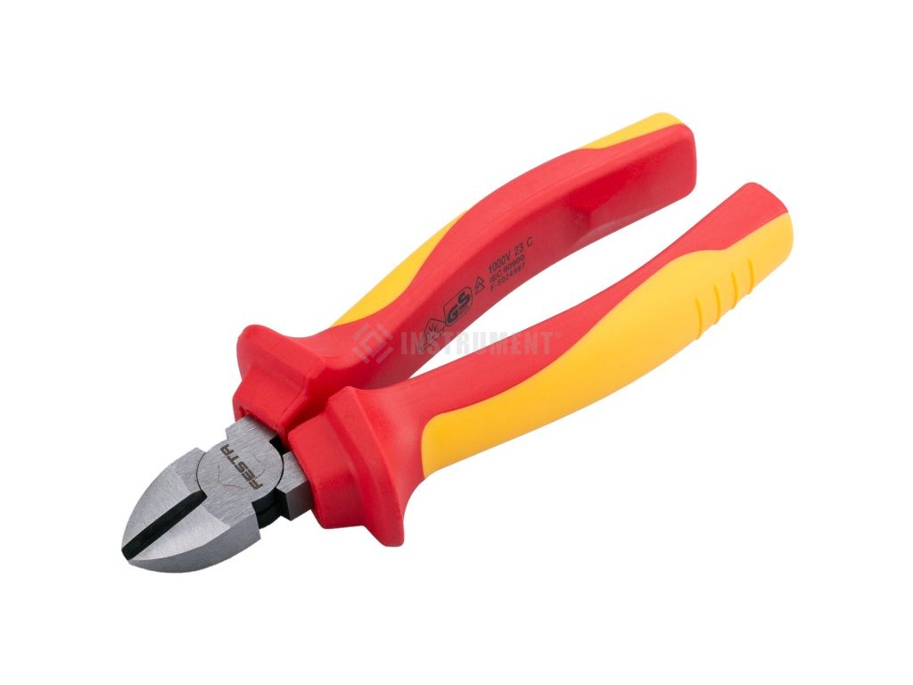 Kleště VDE boční štípací 160 mm FESTA mají certifikaci elektro VDE 1000 V, IEC/EN 60900-2004, kombinace polypropylenu a pryže na ergonomicky tvarovaných ručkách zaručuje výborné antiskluzové vlastnosti a dobrou odolnost vůči mazadlům a chemikáliím