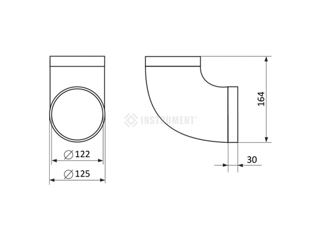 Koleno pro kruhové potrubí, nasazuje se do trubky, kompatibilní se vzduchovody a ventilátory daného rozměru.