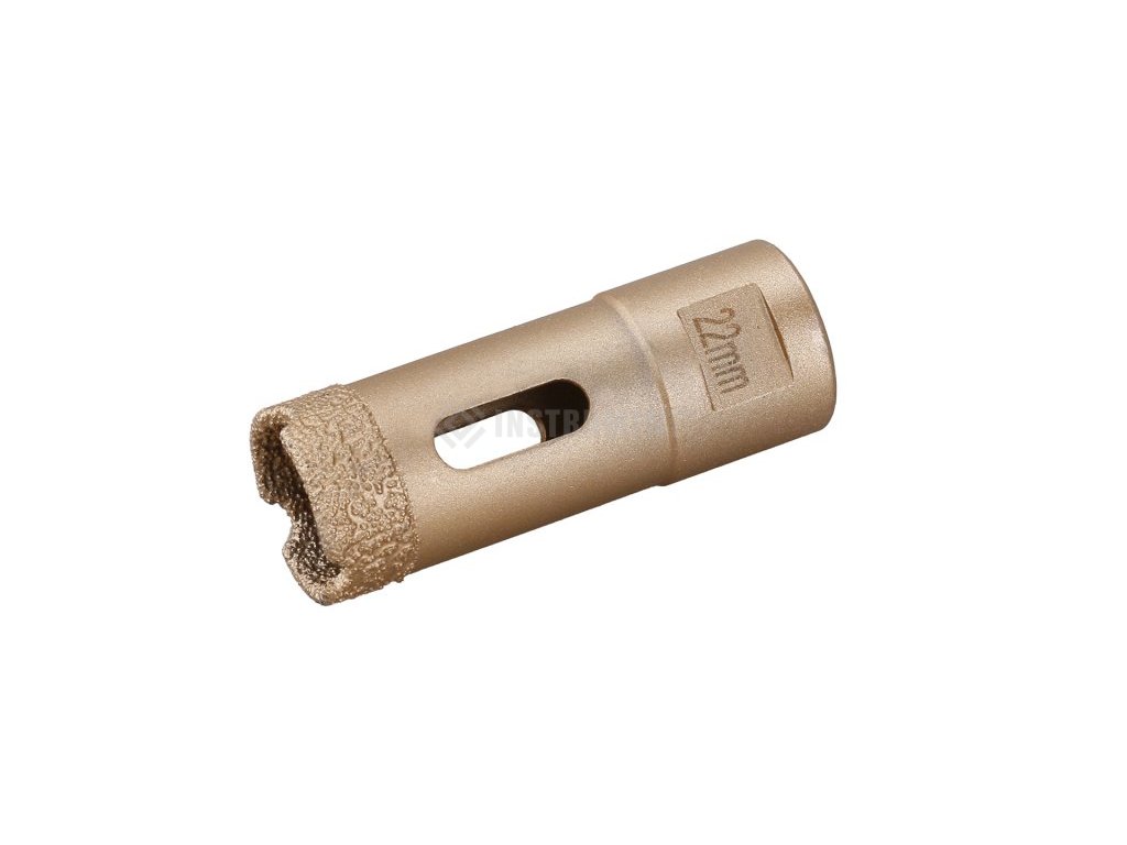 profesionální vykružovací diamantová korunka se závitem M14 - pro úhlové brusky pro "suché" přesné a rychlé vrtání do kamene, dlažby, obkladů, žuly, mramoru a jiných extrémně tvrdých materiálů nejen ve stavebnictví výška vrstvy diamantu 10 mm, dlouhá životnost bez nutnosti použít jakýkoli pomocný nástroj vykroužíte přesný otvor na požadovaném místě doporučený pracovní postup - našroubujte korunku přímo na závit hlavy úhlové brusky, pevně dotáhněte, vykružovat požadovaný otvor začněte pod úhlem 45 °, korunka a rychlost brusky okamžitě zajistí uchycení v požadovaném místě, pomalu při rovnoměrně vytvořeném tlaku narovnejte směr vykružování do svislé polohy, menší průměry 6 - 14 mm je u vrtání do tvrdých dlažeb