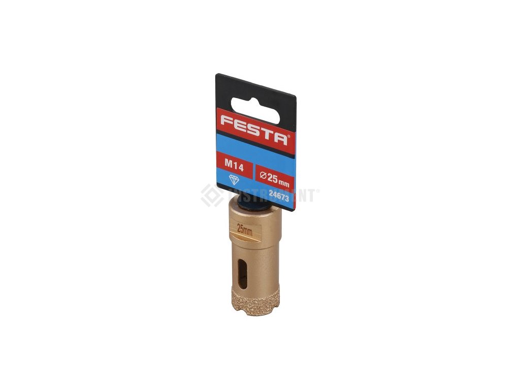 profesionální vykružovací diamantová korunka se závitem M14 - pro úhlové brusky pro "suché" přesné a rychlé vrtání do kamene, dlažby, obkladů, žuly, mramoru a jiných extrémně tvrdých materiálů nejen ve stavebnictví výška vrstvy diamantu 10 mm, dlouhá životnost bez nutnosti použít jakýkoli pomocný nástroj vykroužíte přesný otvor na požadovaném místě doporučený pracovní postup - našroubujte korunku přímo na závit hlavy úhlové brusky, pevně dotáhněte, vykružovat požadovaný otvor začněte pod úhlem 45 °, korunka a rychlost brusky okamžitě zajistí uchycení v požadovaném místě, pomalu při rovnoměrně vytvořeném tlaku narovnejte směr vykružování do svislé polohy, menší průměry 6 - 14 mm je u vrtání do tvrdých dlažeb, mezi jednotlivými vrty, ZCHLADIT - stačí ponořit do sklenice s vodou nebo nechat v otáčkách ochladit vzduchem! Instruktážní video