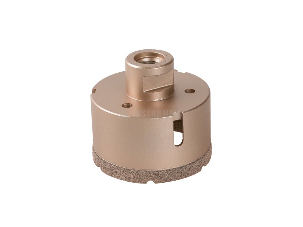 profesionální vykružovací diamantová korunka se závitem M14 - pro úhlové brusky pro "suché" přesné a rychlé vrtání do kamene, dlažby, obkladů, žuly, mramoru a jiných extrémně tvrdých materiálů nejen ve stavebnictví výška vrstvy diamantu 10 mm, dlouhá životnost bez nutnosti použít jakýkoli pomocný nástroj vykroužíte přesný otvor na požadovaném místě doporučený pracovní postup - našroubujte korunku přímo na závit hlavy úhlové brusky, pevně dotáhněte, vykružovat požadovaný otvor začněte pod úhlem 45 °, korunka a rychlost brusky okamžitě zajistí uchycení v požadovaném místě, pomalu při rovnoměrně vytvořeném tlaku narovnejte směr vykružování do svislé polohy, menší průměry 6 - 14 cm je u vrtání do tvrdých dlažeb, mezi jednotlivými vrty, ZCHLADIT - stačí ponořit do sklenice s vodou nebo nechat v otáčkách ochladit vzduchem! Instruktážní video