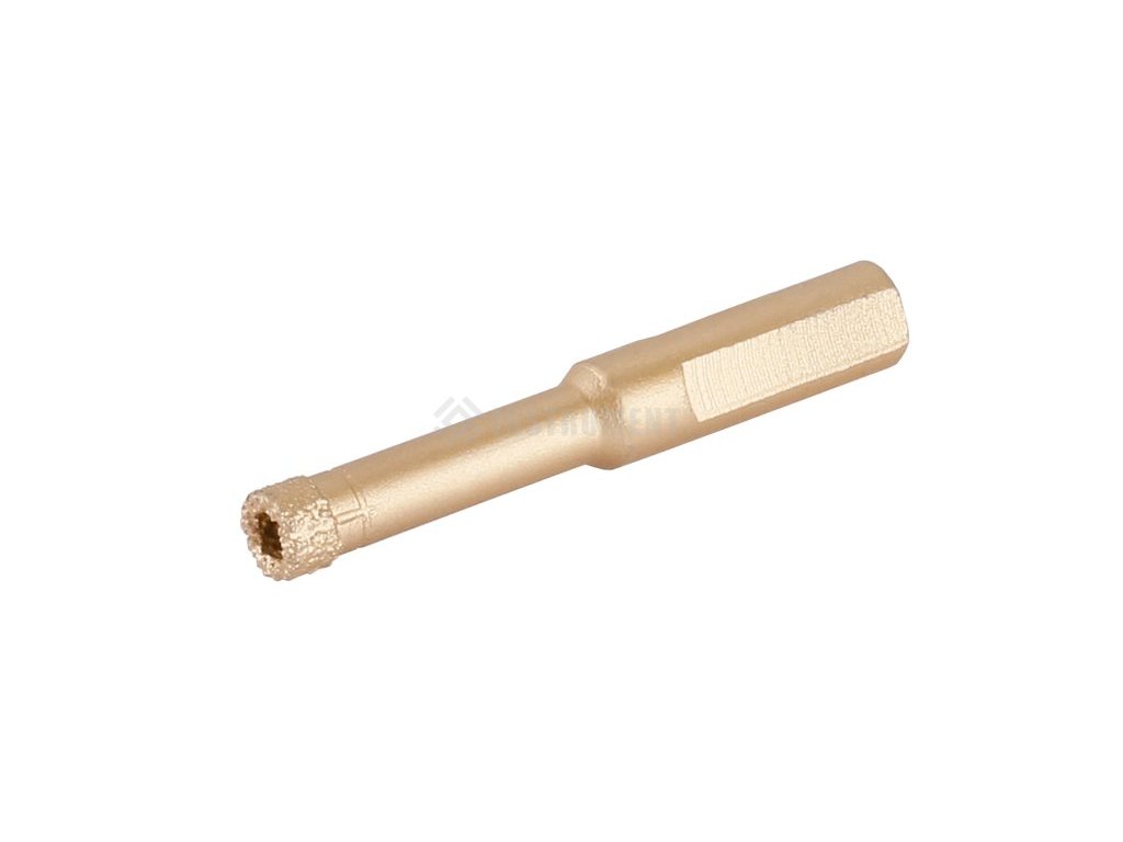 profesionální vrtací diamantová korunka se stopkou pro přesné a rychlé vrtání do kamene, dlažby, obkladů, žuly, mramoru a jiných extrémně tvrdých materiálů nejen ve stavebnictví výška vrstvy diamantu 10 mm, dlouhá životnost kotunku lze použít bez nutnosti použítí jakéhokoliv pomocného nástroje, u hladkých povrchů, doporučujeme požít vodič pro vrtáky a korunky 20379 doporučený pracovní postup - korunku upněte do vrtačky nebo AKU vrtačky doporučení - vrtačka by měla mít dostatečný výkon a vysoké otáčky, vrtat požadovaný otvor začněte pod úhlem 45 °, korunka a rychlost otáček vrtačky okamžitě zajistí uchycení v požadovaném místě, pomalu při rovnoměrně vytvořeném tlaku narovnejte směr vrtání do svislé polohy při vrtání doporučujeme korunky, zejména u tvrdých dlažeb chladit