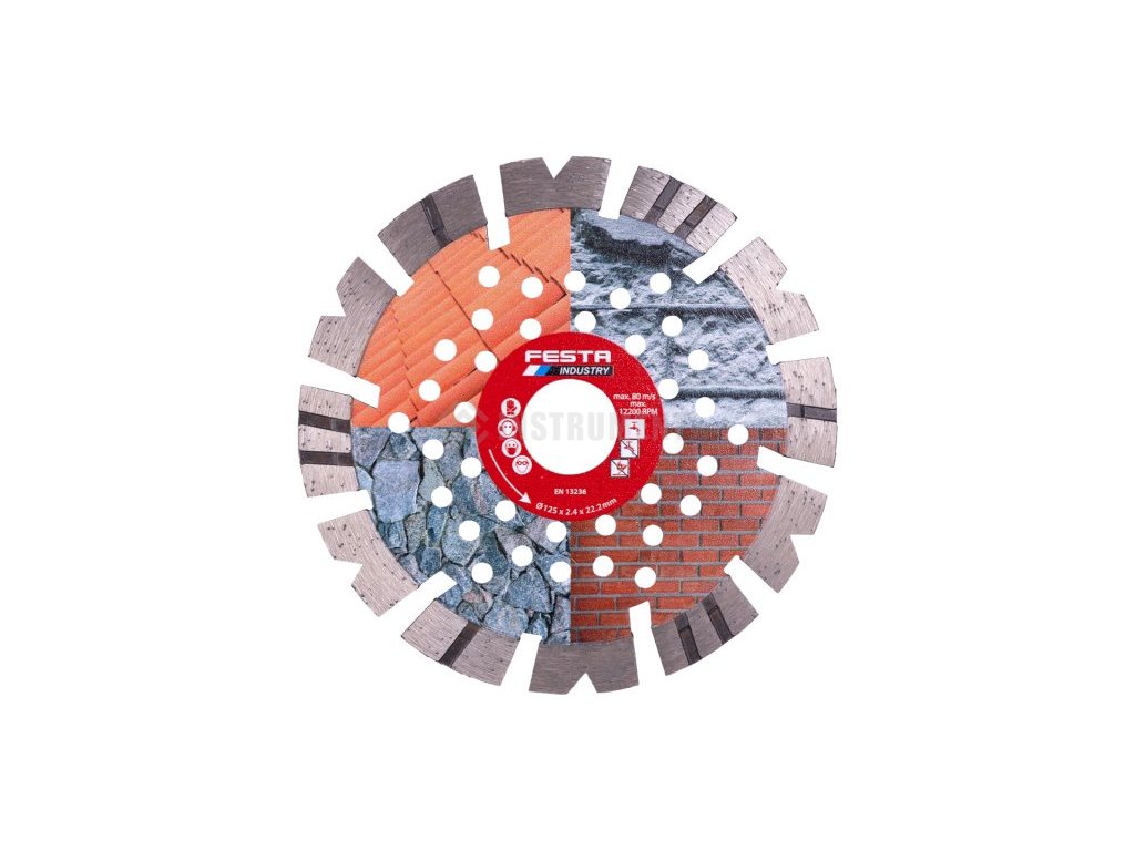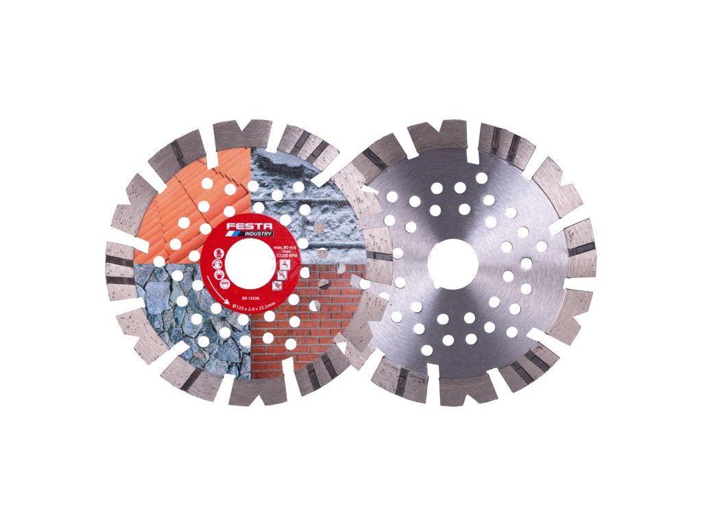 - speciální tvar segmentů, vysoký obsah syntetických diamantů, výška segmentu 12 mm - rychlý řez a dlouhá životnost