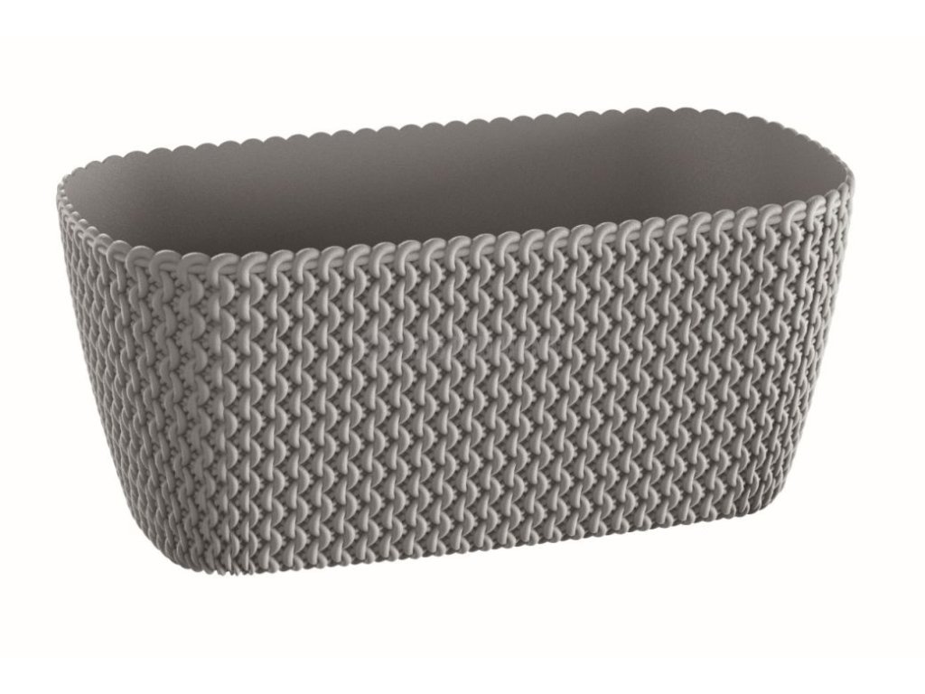 Oválný balkonový box s mimořádně atraktivním dekorativním motivem, věrně imitujícím pletení z hrubé měkké příze. Umístěný na kuchyňské lince nebo na parapetu jistě dodá atraktivitu vašemu okolí.