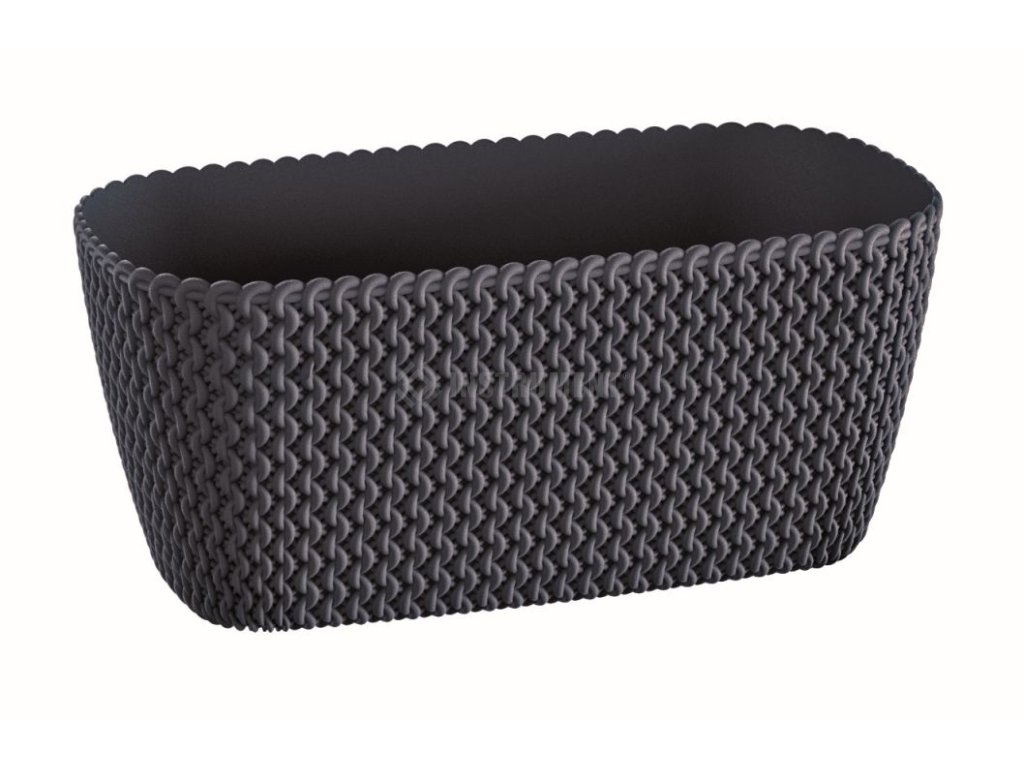 Oválný balkonový box s mimořádně atraktivním dekorativním motivem, věrně imitujícím pletení z hrubé měkké příze. Umístěný na kuchyňské lince nebo na parapetu jistě dodá atraktivitu vašemu okolí.