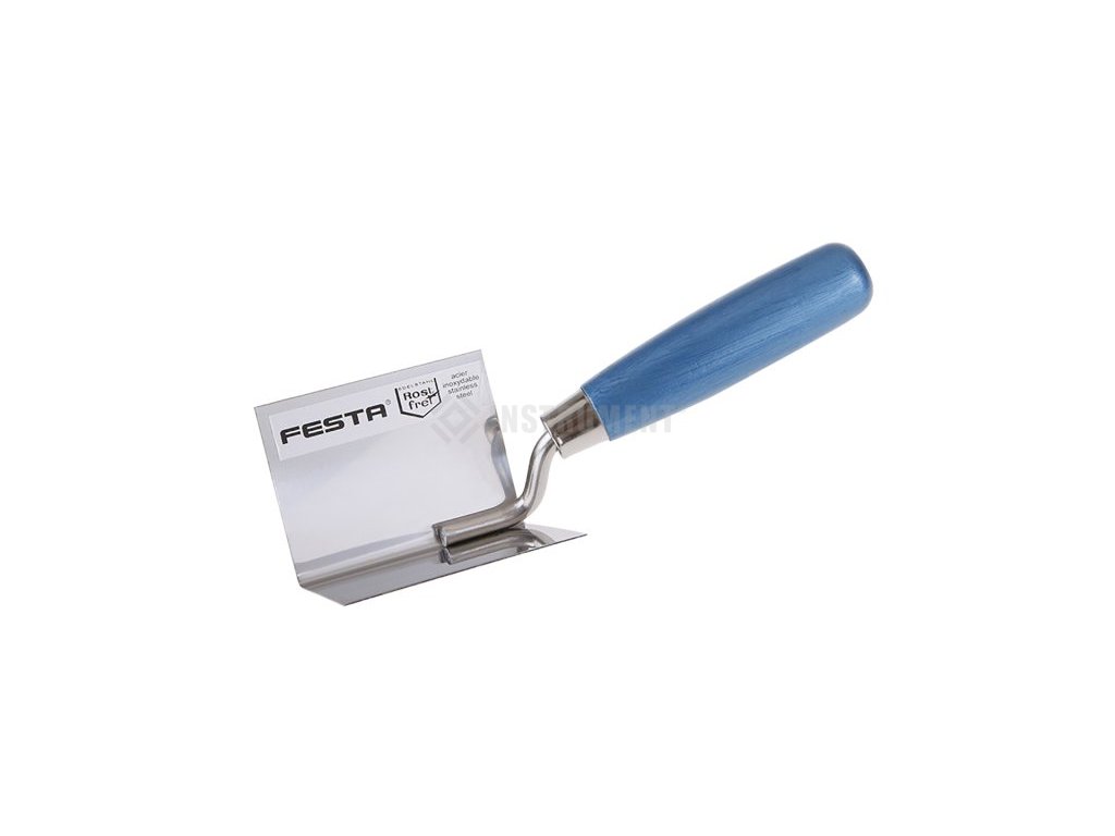 Koutová vyhlazovací nerezová lžíce FESTA 80 x 60 x 60 mm s dřevěnou ručkou. Lžíce rohová (koutová) je vyrobená z kvalitní nerez oceli o tloušťce 1,0mm, držadlo je dřevěné s lakovanou povrchovou úpravou. Vymazávačka se používá k úpravě a začištění jak vnějších, tak vnitřních rohů.