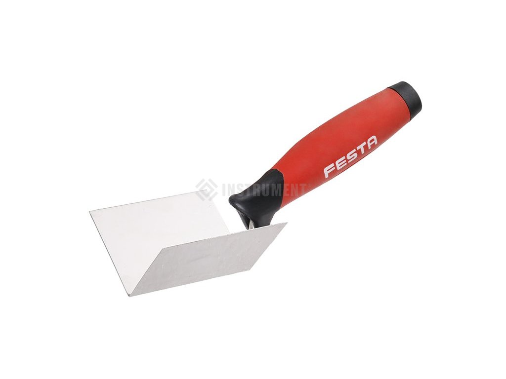 Koutová vyhlazovací nerezová lžíce FESTA 80 x 60 x 60 mm s gumovou ručkou. Lžíce rohová (koutová) je vyrobená z kvalitní nerez oceli o tloušťce 1,0mm, držadlo je gumové, ergonomicky tvarované. Vymazávačka se používá k úpravě a začištění jak vnějších, tak vnitřních rohů.
