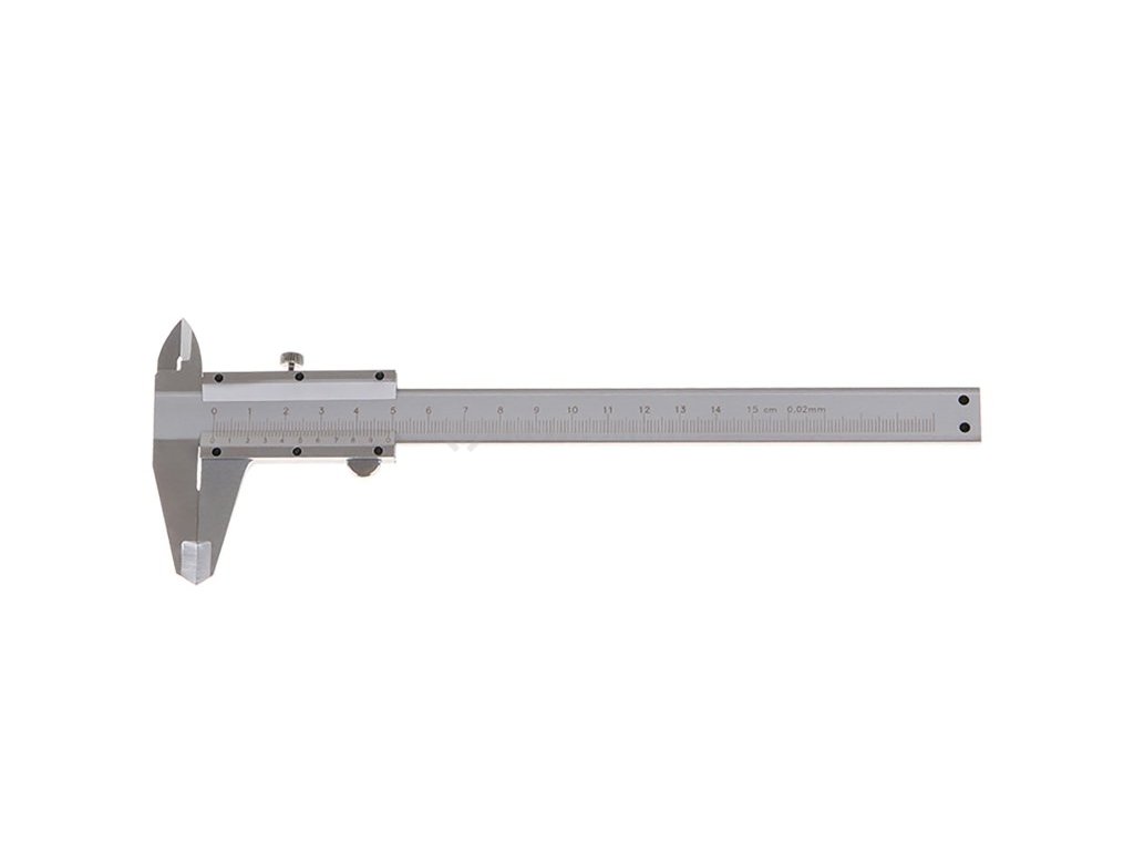 Posuvné měřidlo 0 - 150 mm s přesností 0,02mm, metrická stupnice v mm, hloubkoměr, kvalitní nerezová ocel, přesné zpracování, plynulý posuv, šroubková aretace - vhodné pro stabilnější přenos rozměrů, tabulka převodů jednotek, plastové pouzdro.