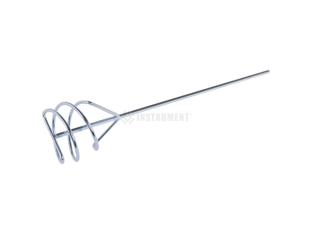 Míchadlo spirála - drát (metla), pozinkované, rozměr: 100 x 500 mm - šestihran, použití: pro důkladné rozmíchání lepidel na obklady, spárovaných hmot, lepících malt, hotových omítek, mazaniny, stěrkovacích hmot, vyrovnávacích hmot.