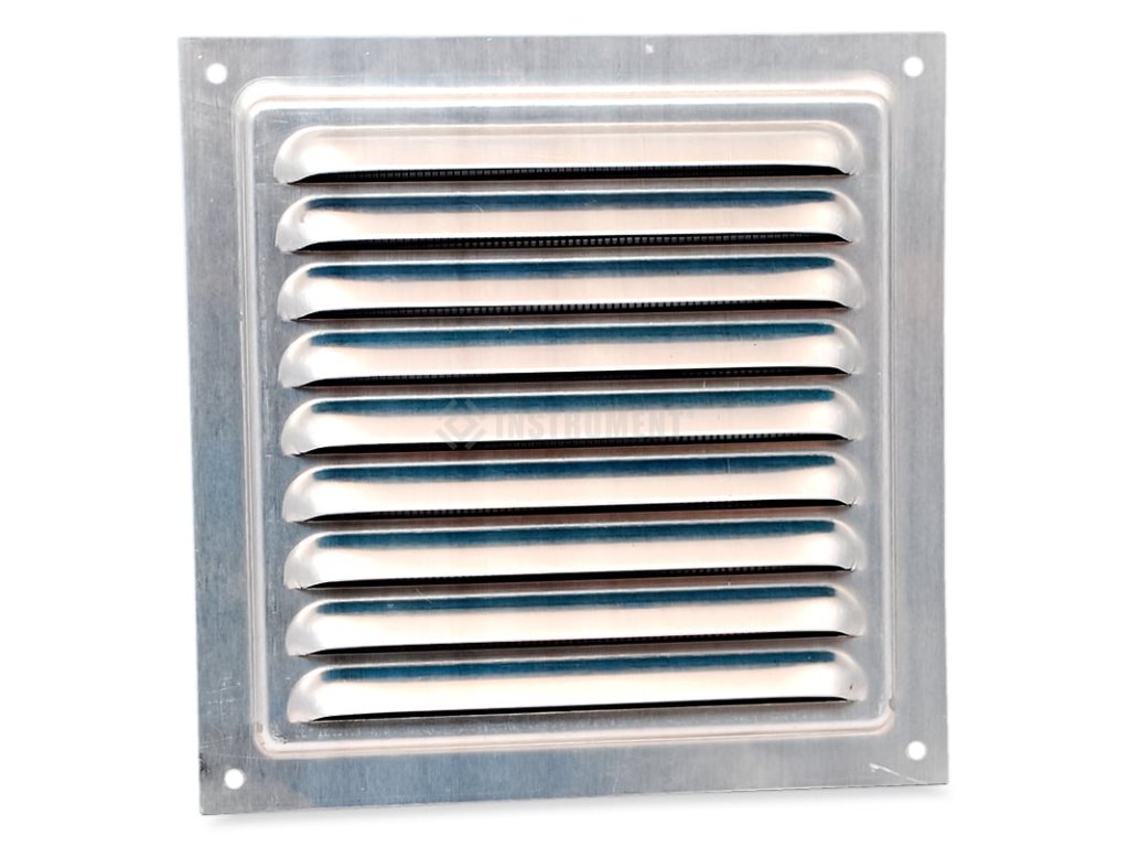 Kombinovaná mřížka 150x150mm, stříbrný hliník, pro kombinaci větrání a sání. Ventilační mřížka s pevnými skloněnými horizontálními žaluziemi. Pro průmyslové, obchodní, domácí větrání, vytápění a klimatizaci. Pro vnitřní a vnější montáž. Uchycení pomocí šroubů na omítku. Odolná vůči nepříznivým atmosférickým vlivům a teplotě, jednoduchost a pohodlí instalace, snadné čištění. Hliníková mřížka je vybavena síťkou proti hmyzu.