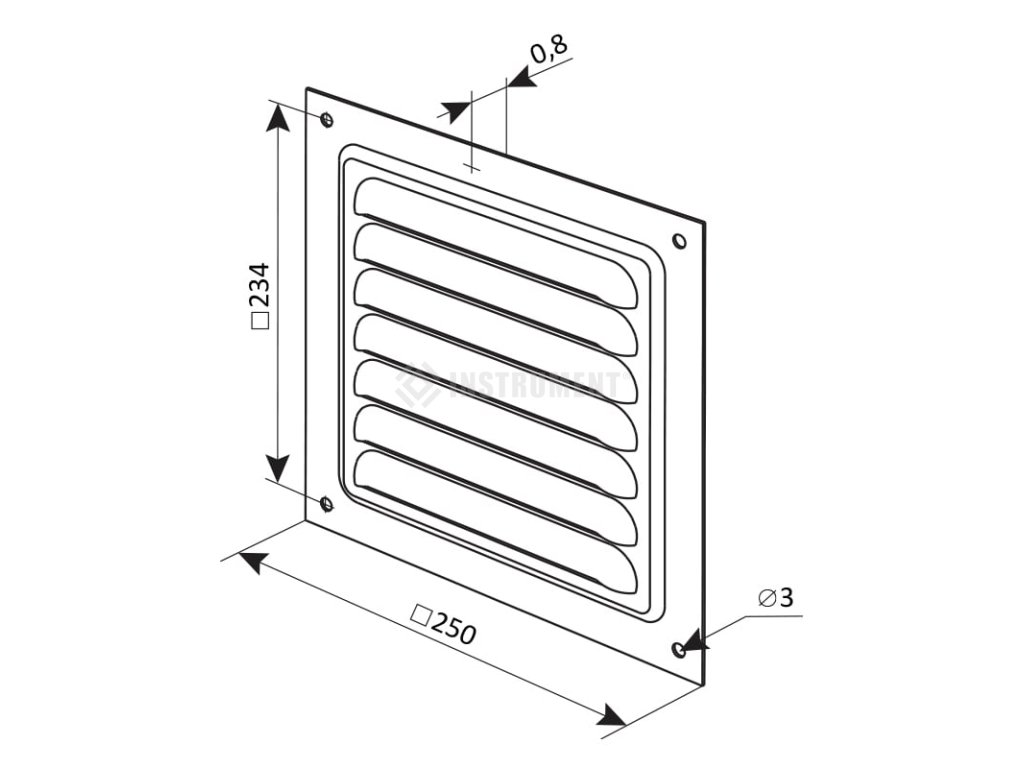 Kombinovaná mřížka 250x250mm, bílá barva, pro kombinaci větrání a sání. Ventilační mřížka s pevnými skloněnými horizontálními žaluziemi. Pro průmyslové, obchodní, domácí větrání, vytápění a klimatizaci. Pro vnitřní a vnější montáž. Uchycení pomocí šroubů na omítku. Odolná vůči nepříznivým atmosférickým vlivům a teplotě, jednoduchost a pohodlí instalace, snadné čištění. Kovová bílá mřížka je vybavena síťkou proti hmyzu.