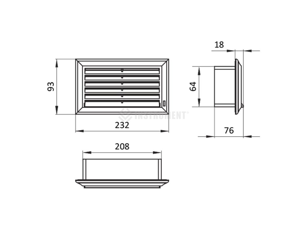 Plochá plastová mřížka s regulací pro potrubí 60 x 204 mm, 230 x 86 mm