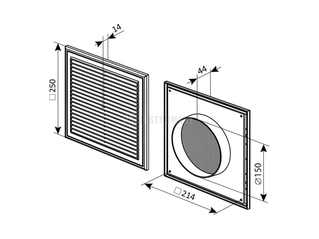 Mřížka větrací MV 250/150Vs s nástavcem ventilační