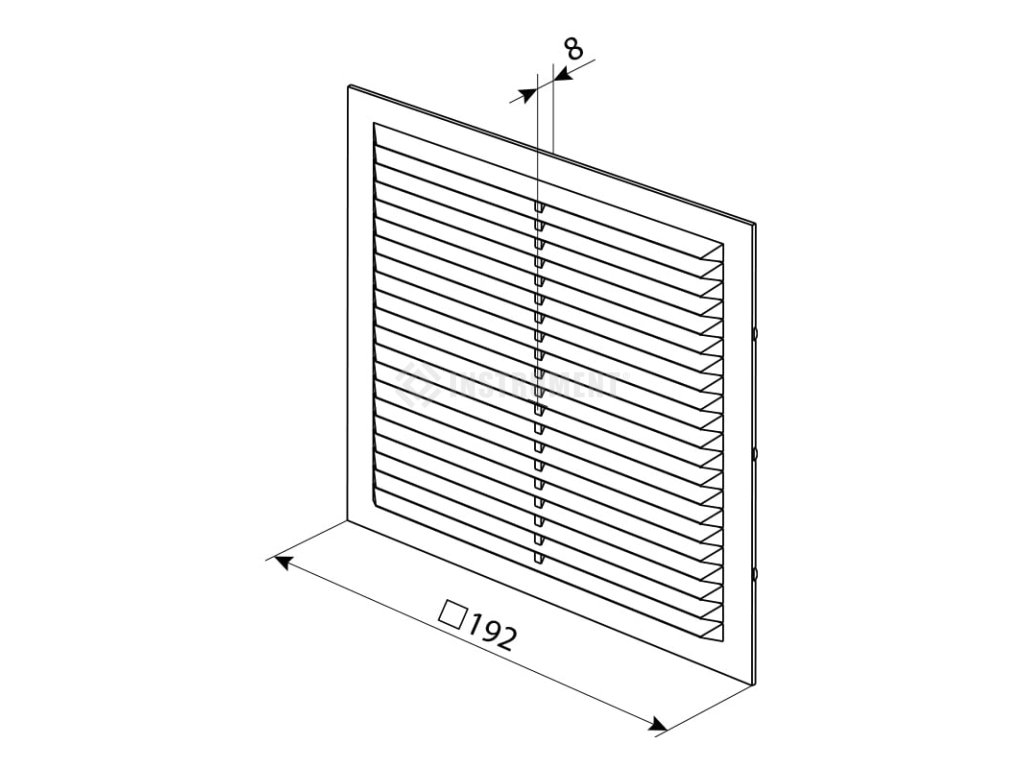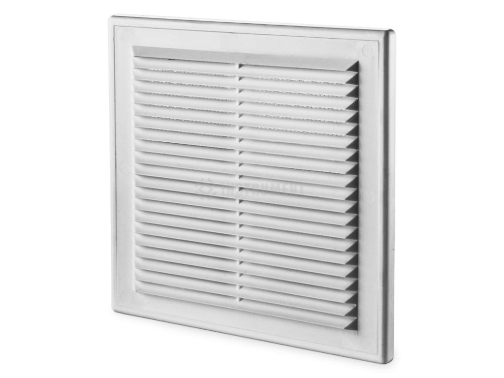 Čtyřhranná nalepovací plastová bílá mřížka bez nástavce, 192 x 192 mm.