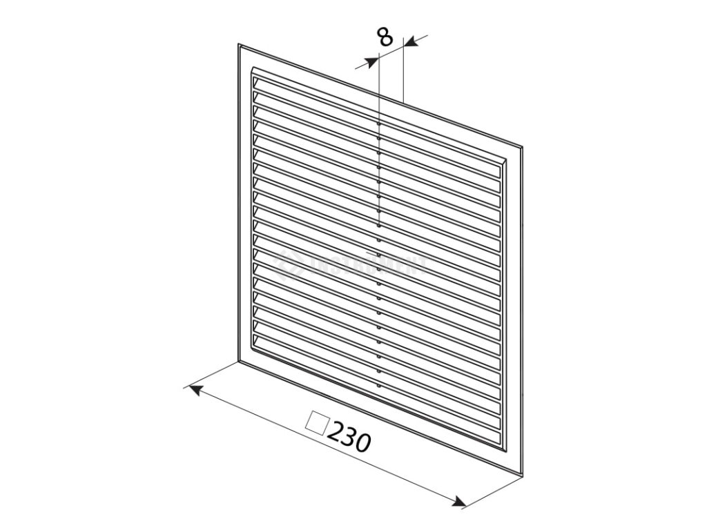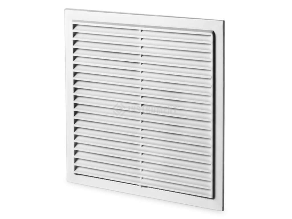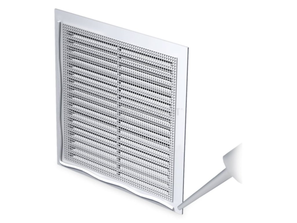 Čtyřhranná nalepovací plastová bílá mřížka bez nástavce, 250 x 250 mm.