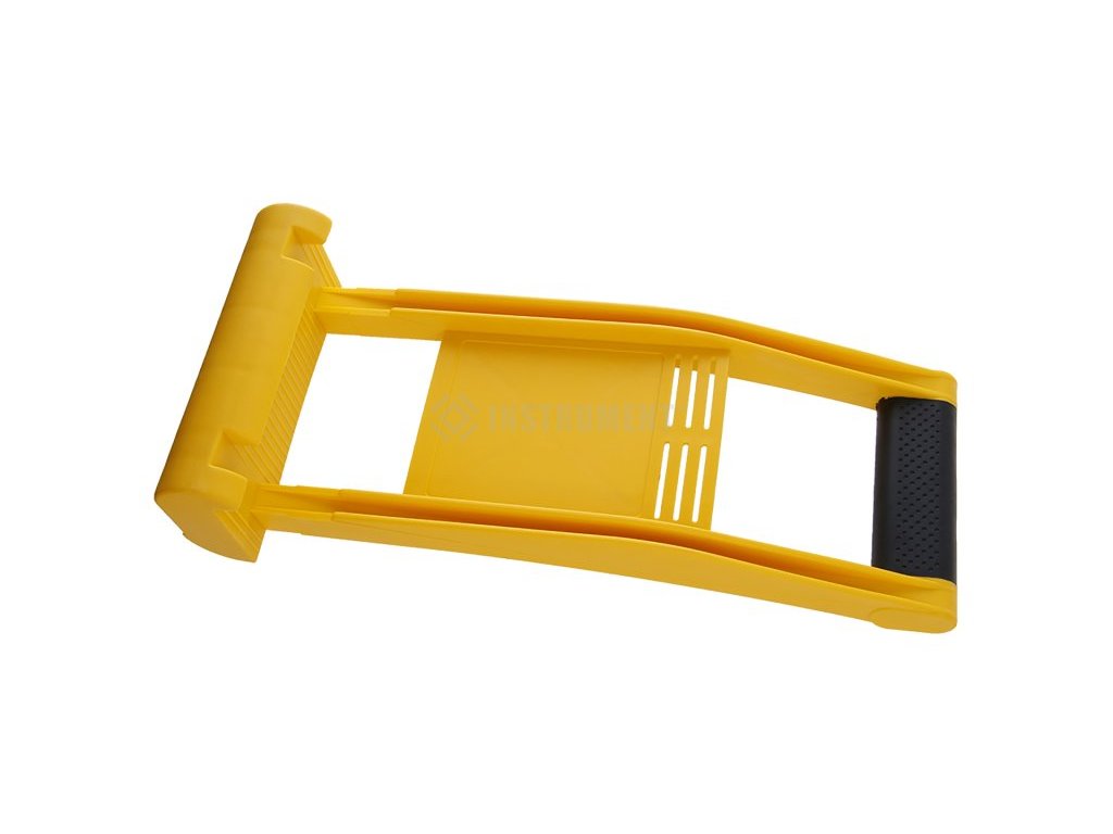 Nosič sádrokartonových desek. Rozměr: 36 x 16,5 x 7,5 cm. Lehké odolné tělo z plastu, nepoškozuje povrch desky. Ergonomická rukojeť. Bezpečný systém fixace desky v drážce během transportu. Hmotnost 0,425 kg.