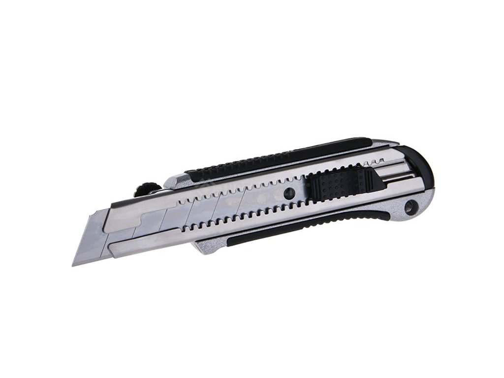 Profesionální odlamovací nůž, přesné zpracování - kvalitní materiály a ergonomie, odolný a přesný posuv s automatickou aretací, pojistná šroubková aretace, šířka čepele 25mm, baleno na blistru.