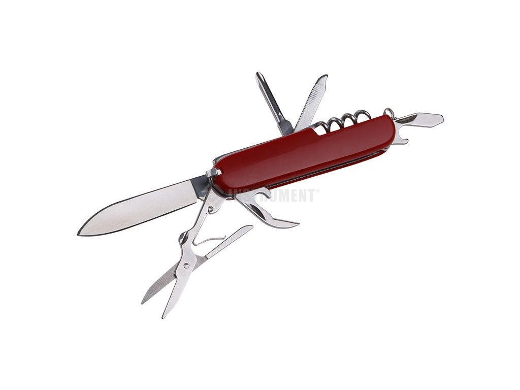Kapesní multifunkční zavírací nůž, plastová rukojeť, čepele a ostatní nástroje z nerezové oceli, kvalitní nýtování, délka čepele 85mm, blistr.