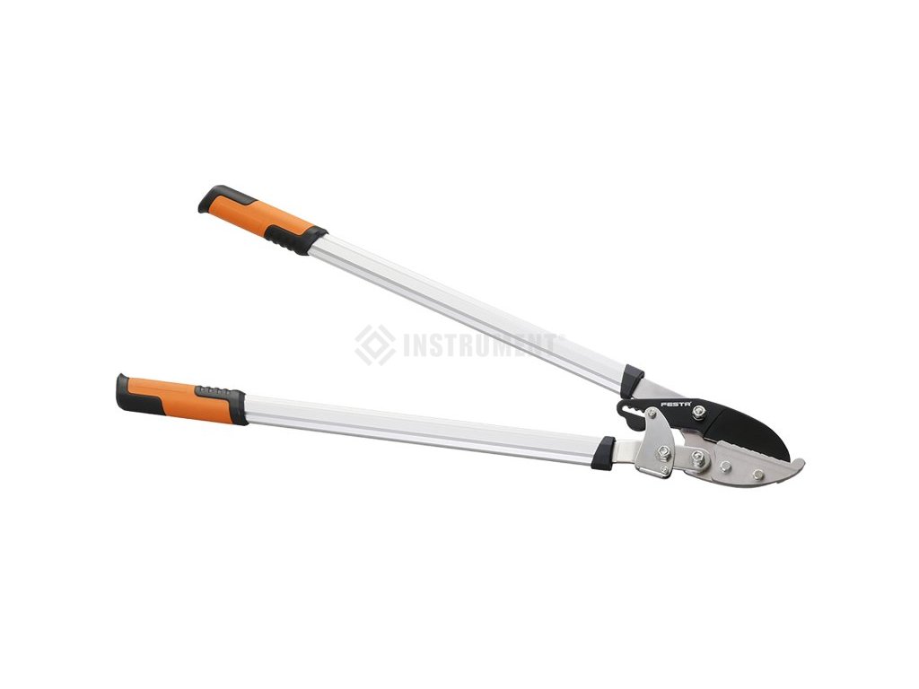 Nůžky na větve - ráčnové, délka 750 mm, ráčnový - rohatkový mechanismus umožňuje vynaložit menší sílu při práci, klasické nůžky na tvrdé a suché větve do 40 mm, přesně broušený nůž s nepřilnavým povlakem, speciální tvar - geometrie nože pro optimální přenos síly - výjimečně čistý a hladký střih, ozubená čast pevné čelisti zamezuje otačení a sklouznutí větve při střihu, doraz z pružného plastu chrání ostří, lehká hliníková ramena eliptického tvaru, ergonomicky tvarované rukojeti s neklouzavých materiálů zaručují pohodlnou a bezpečnou práci