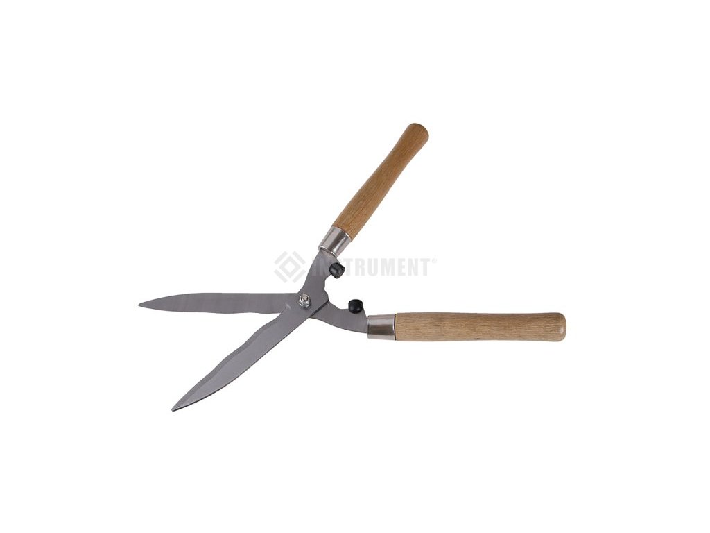 Nůžky na žívé ploty - vlnité ostří, kvalitní použité matriály i precizní zpracování, zvlněné ostří zamezuje vyklouzávání i drobných větviček při střihu, dřevěné rukojeti s plastovým dorazem zaručují pohodlnou práci a bezpečný uchop, použití : k zastříhávání živých plotů, keřů, stromků.