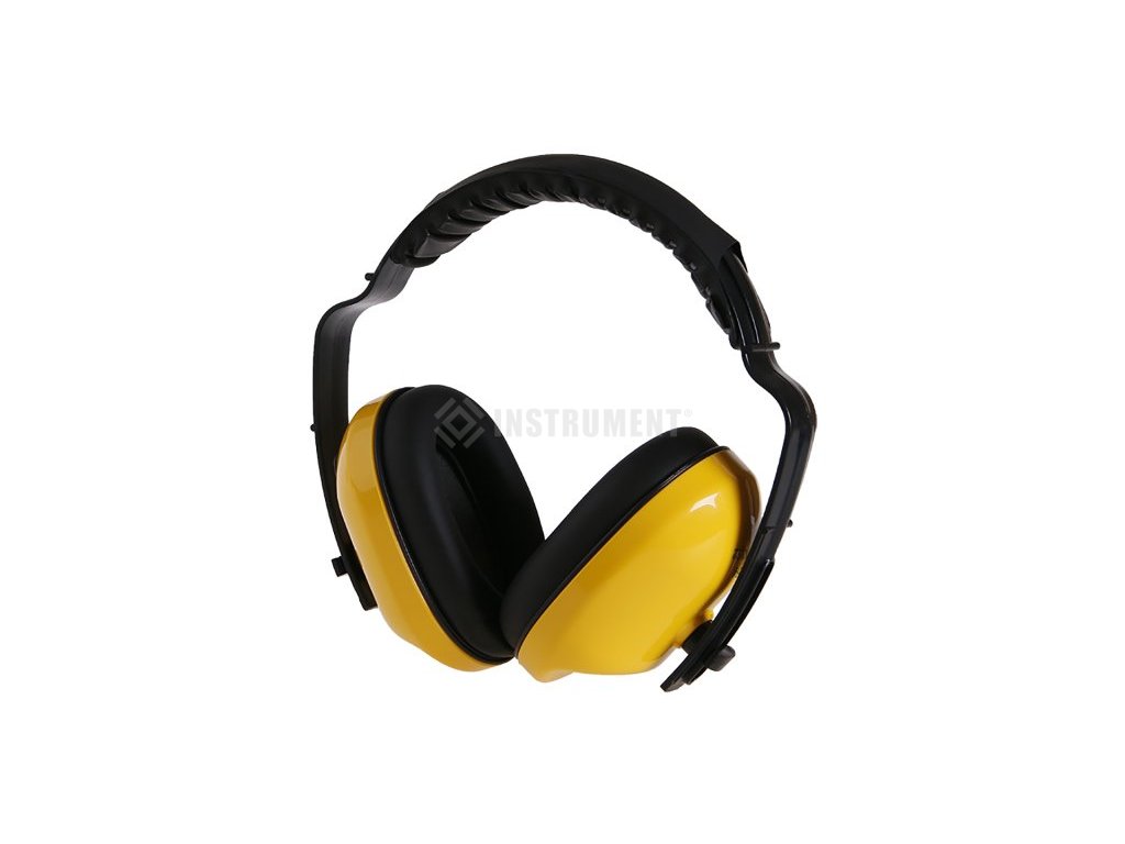 Žluté ochranné sluchátka z ABS materiálu, PVC polštářky, měkký spojovací oblouk, možnost nastavení délky, 27 dB, CE EN 352-1.