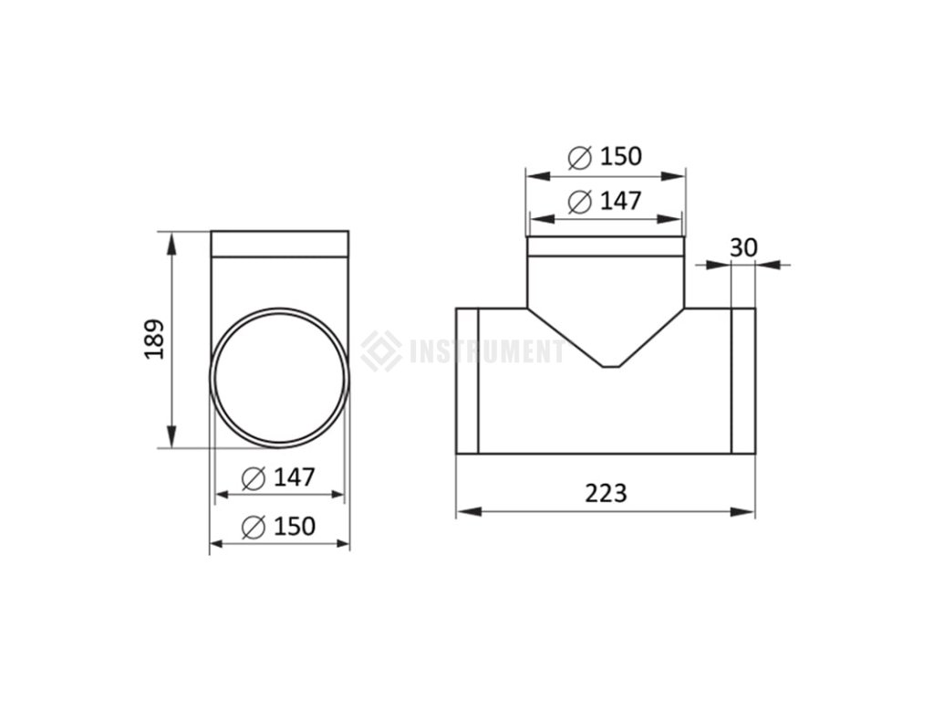 Odbočka plastová kruhová T kus Ø150mm 90°
