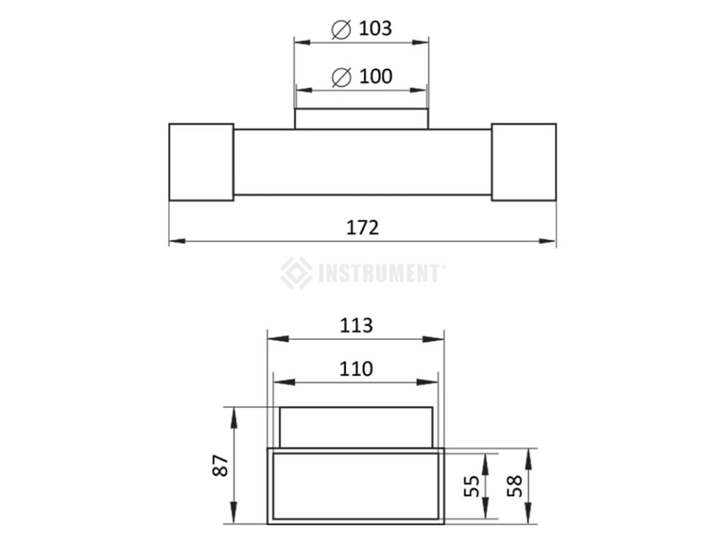 Plochý/kruhový plastový T-kus; 55 x 110 mm / ø100 mm