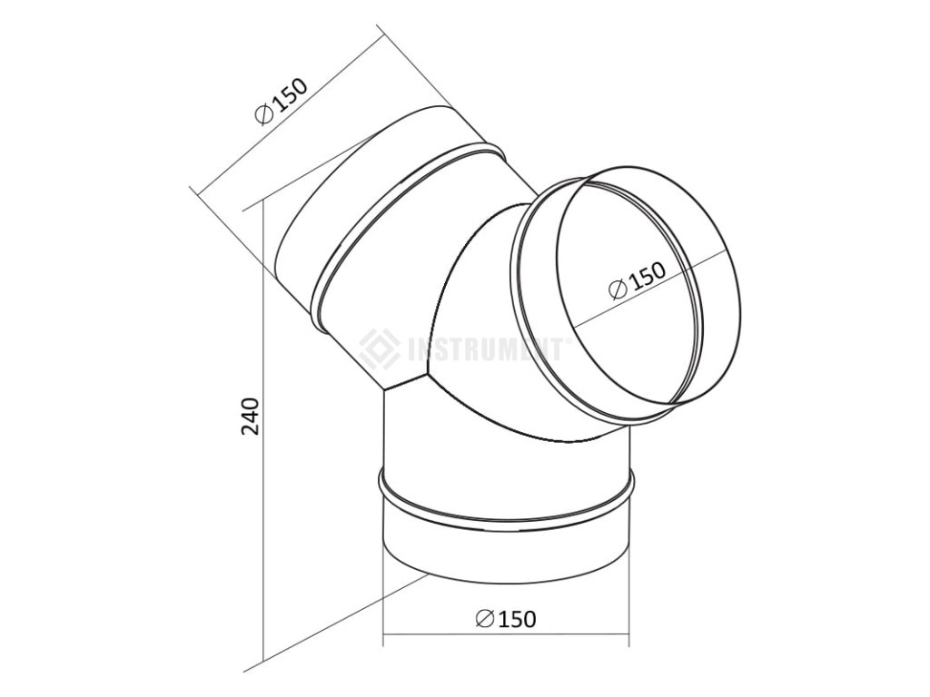 Odbočka 150mm Y slouží k rozdělení nebo sloučení vzduchovodů. Odbočka má dlouhodobou životnost, její montáž je jednoduchá, bez použití složitého nářadí (spoje se do sebe jednoduše nastrčí). Odbočka je určena do teploty 100°C a je vyrobena z pozinkovaného plechu.