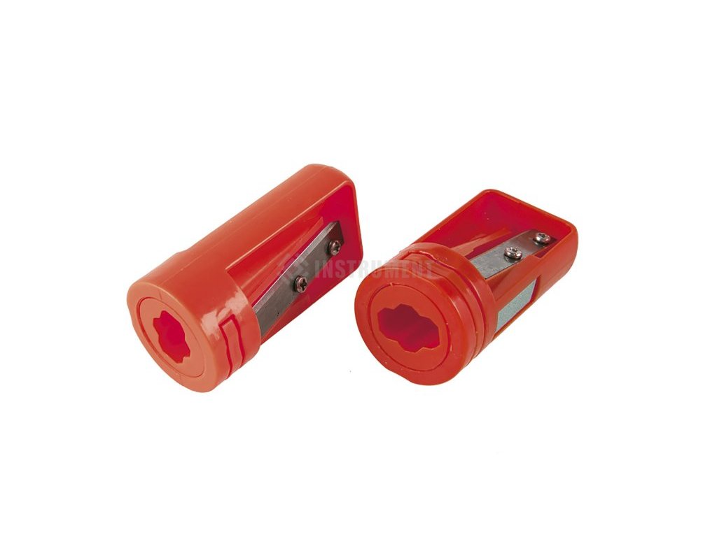 Ořezávátko nejen na tesařské tužky. Tvar i konstrukce ořezávátka umožňuje rychle a snadno ořezat tužky do požadované ostrosti tuhy. Vstupní otočný tvar ořezávátka je uzpůsobený pro ploché tesařské tužky i šestihranné tužky a pastelky. Smirková plocha pro dodatečné dobroušení tuhy.