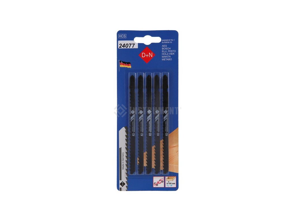 Materiál:HSS ocel Pracovní délka 105mm Tlouštka: 1,3mm Rozteč zubů: 4mm Typ ozubení: Podbroušené, rozvedené ozubení Úchyt: Bosch Použití: Měkká ocel (s malým obsahem uhlíku), neželezné kovy, hliník do tl. 2mm, tvrzené plasty, akrylát (plexisklo), izolační materiály, lisované materiály Rychlý řez.