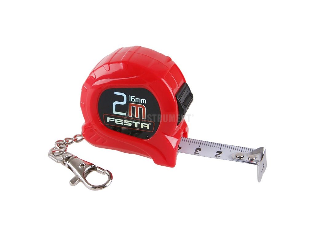 svinovací metr FESTA - přívěsková varianta s karabinou tělo metru vyrobeno z kvalitního ABS plastu, kalená páska - šířka 16 mm, dobře čitelná stupnice, CE certifikát - metr vhodný ke kalibraci brzda s dorazem navíjení pásky, koncový háček s antikorozní úpravou
