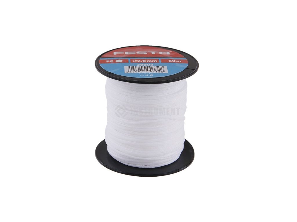 Zednický provázek FESTA, materiál PE ( polyethylen ), odolný proti vodě, splétaný - vynikající vlastnosti v tahu, cívka - návin 50 m, použití : ve stavebnictví, v domacnosti, na zahradě…, .