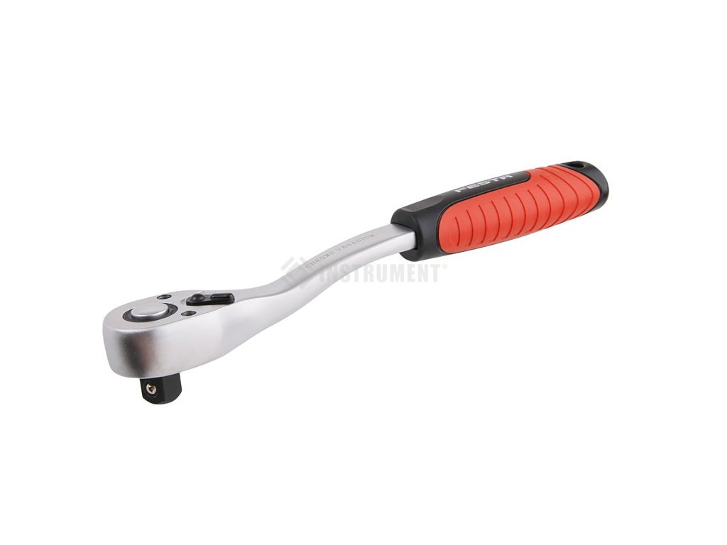 profesionání ráčna z chromvanadiové oceli pro hlavice 1/2" vyhnutý tvare těla pro snadněší práci bez úrazu ráčnový mechnismus z kalené Cr-Mo oceli 72 zubů se záběrem po 5-ti obloukových stupních s přepínáním směru pohybu ráčny - utahování / povolování ergonomická pogumovaná rukojeť - neklouzavá a odolná