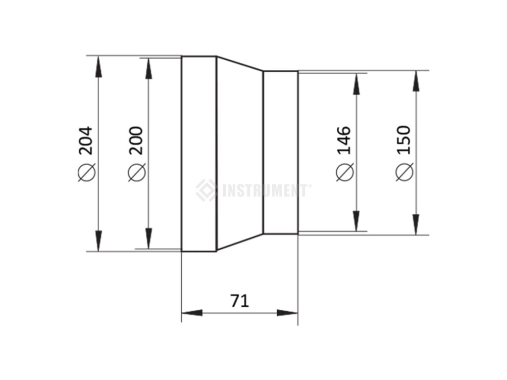 Redukce, spojka, slouží k propojení kruhového ventilačního a větracího potrubí, vzduchovodu, vzduchotechnického potrubí s různým průměrem.