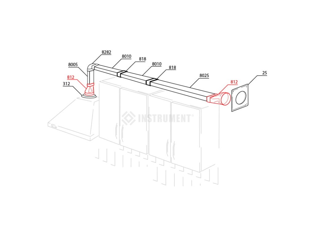 Redukce, spojka, slouží k propojení kruhového a plochého ventilačního a větracího potrubí, vzduchovodu, vzduchotechnického potrubí s různým průměrem.