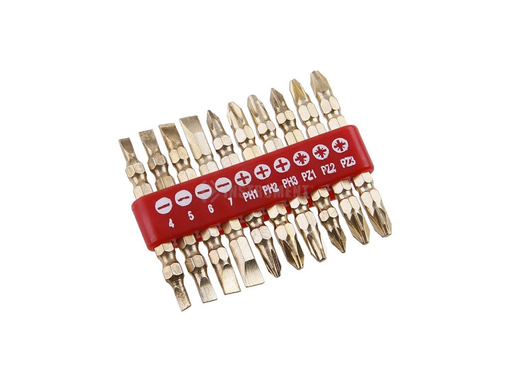 Sada 10 ks oboustranných bitů z chrovanadiové oceli v plastovém organizéru( - 4,5,6,7 + PH1,PH2,PH3, x PZ1,PZ2,PZ3)