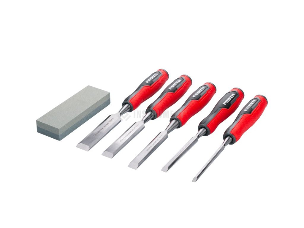 Sada dlátek FESTA 5 ks s brouskem a ergonomickou plastovou rukojetí, úderová plocha. Čepel je kovaná z CrV oceli tvrzená po celé délce.