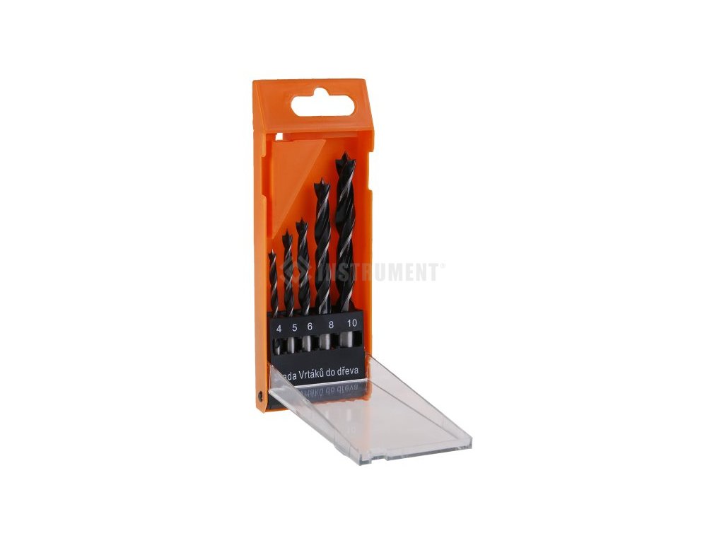 Sada nejpoužívanějších vrtáků 4, 5, 6, 8, 10 mm do dřeva, použití : pro běžné dílenské a kutilské použití, vrtání do dřeva, drřevotřísky, OSB panelů