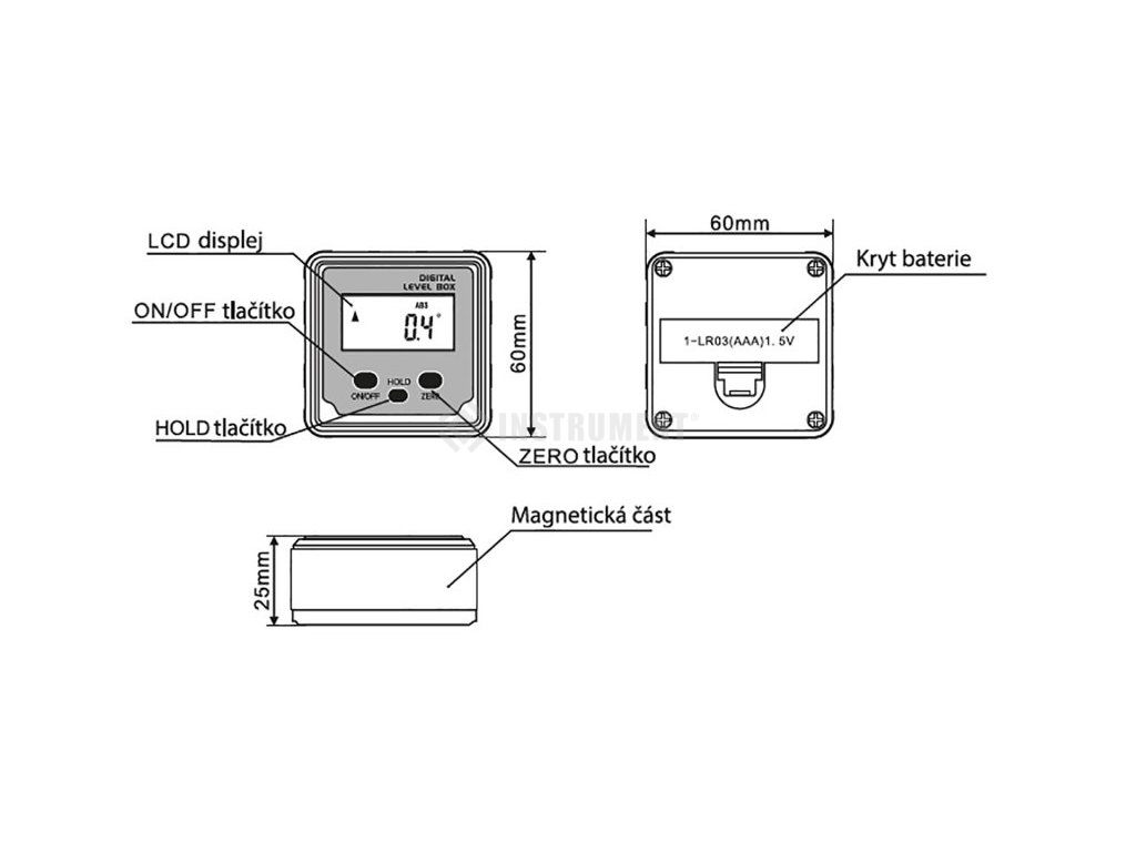 - kompaktní přístroj nahrazující vodováhu, uhloměr, sklonoměr v jednom