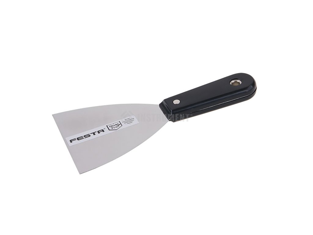 Špachtle nerezová FESTA 100 mm s plastovou ručkou. Je užíván ve štukatérství, malířství, natěračství, opravách karosérií nebo při umělecké tvorbě apod. Je vhodná pro roztírání sádry nebo jiných tmelících hmot či k odstraňování staré malby a nátěrů.