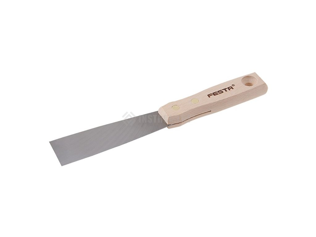 Malířská stěrka (špachtle) s broušeným ocelovým břitem a s dřevěnou nýtovanou rukojetí. Malířské stěrky se použivají pro zapravování děr, zeškrabavání přebytečného materiálu apod. Šířka břitu: 40mm