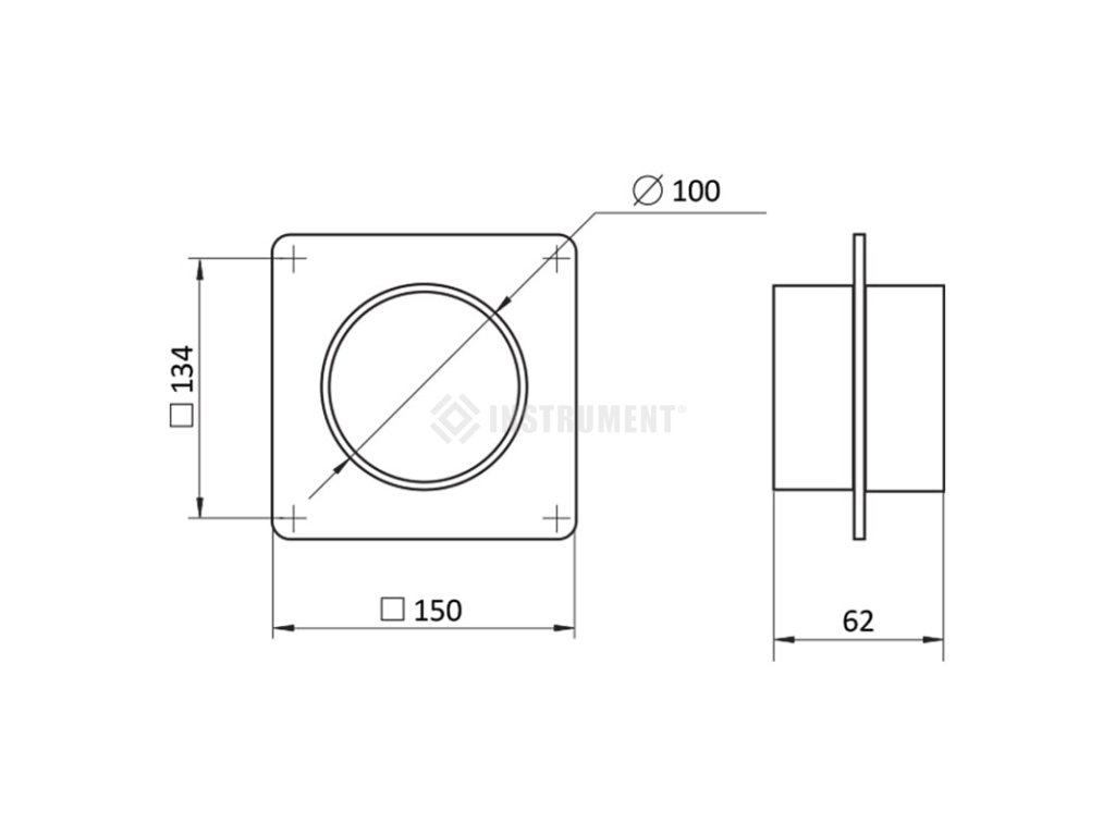 vybaveno přírubou s otvory určenými k montáži na zeď,