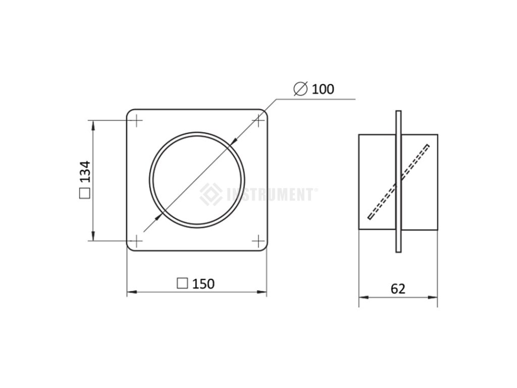 vybaveno přírubou s otvory určenými k montáži na zeď,